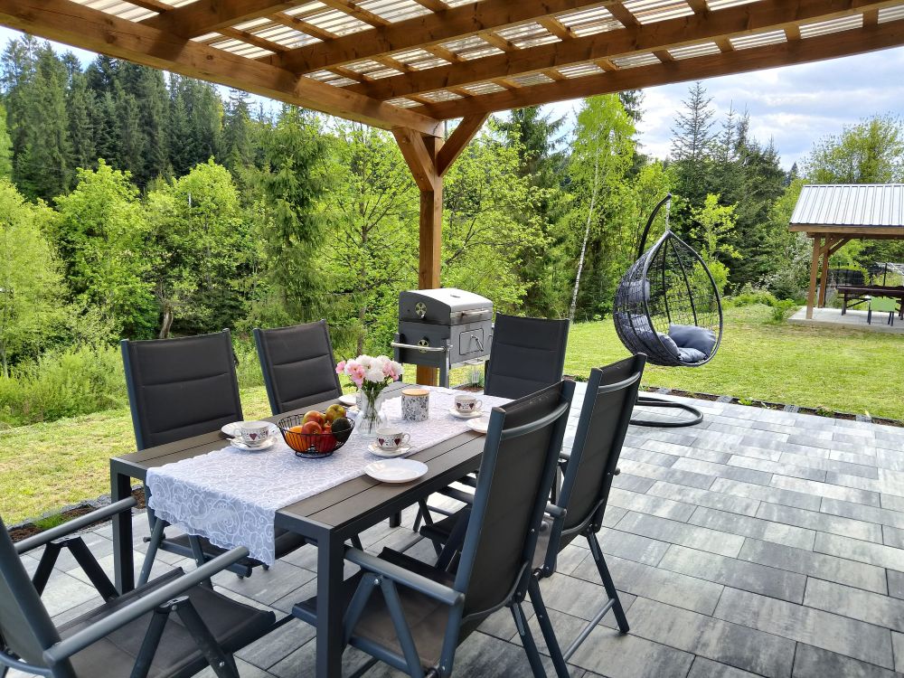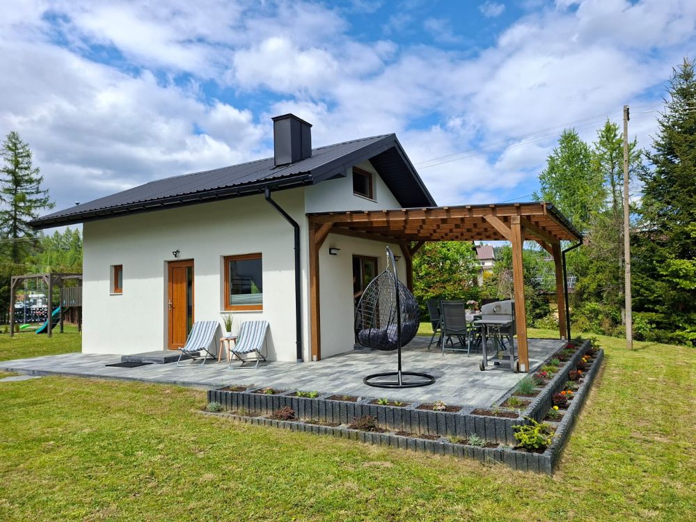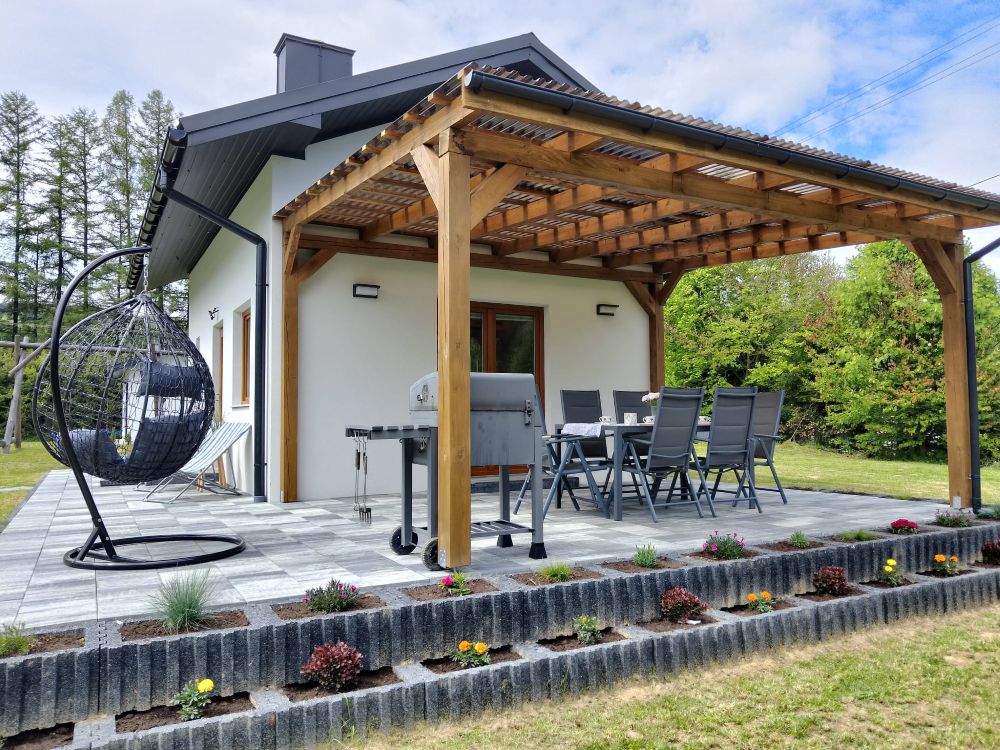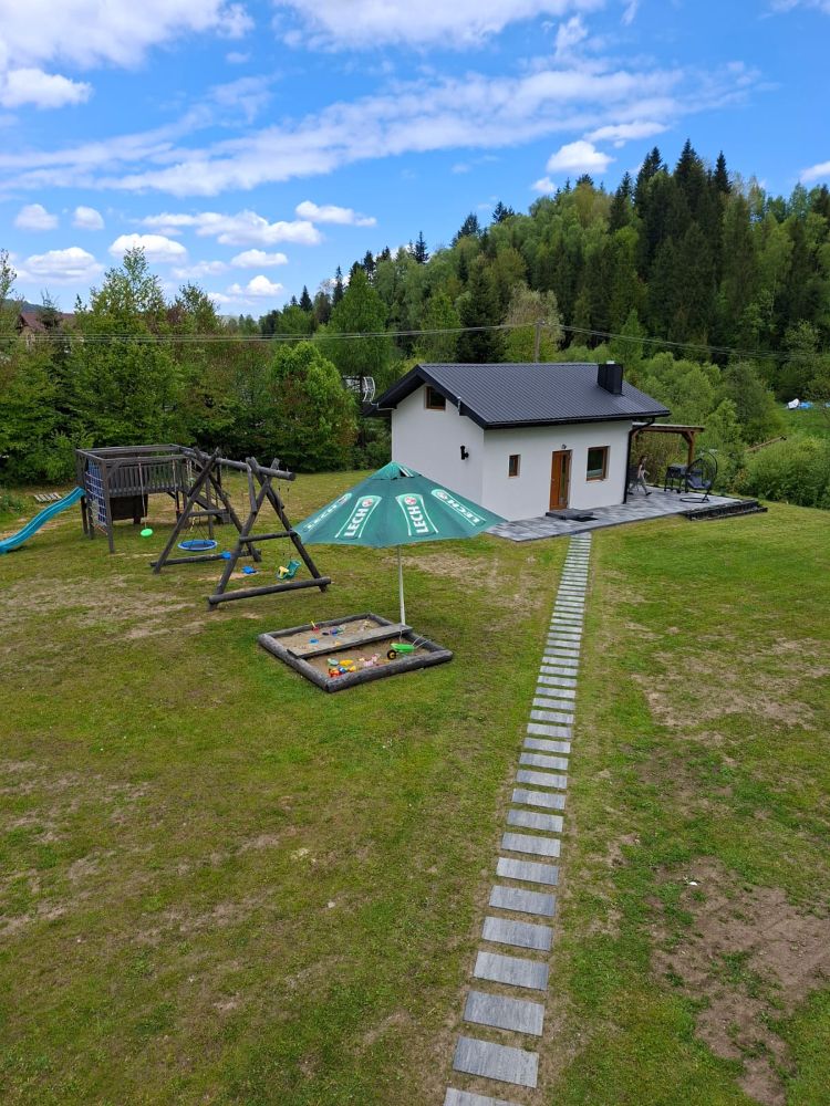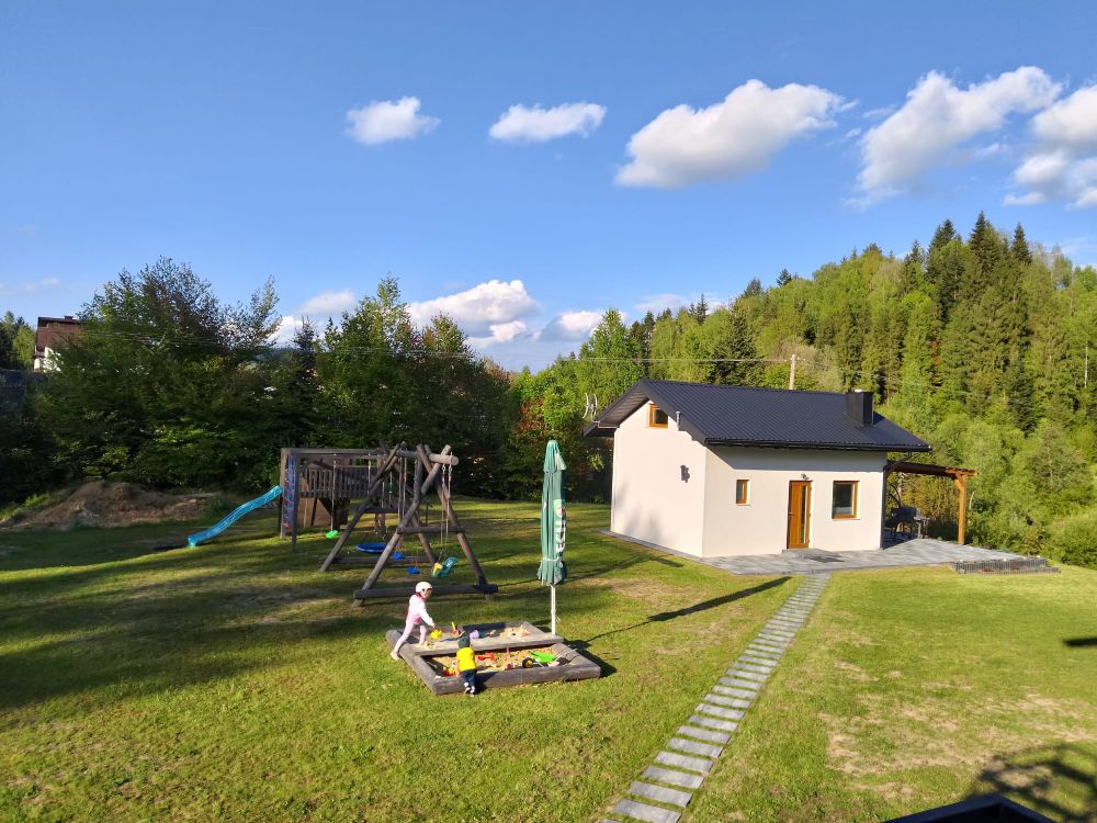 Domek należy do agroturystyki – wszystkie atrakcje typu plac zabaw, ogród i zagrody ze zwierzętami są wspólne z pozostałymi użytkownikami. Jednak przed domkiem znajduje się prywatny taras z meblami ogrodowymi oraz grill do wyłącznej dyspozycji.